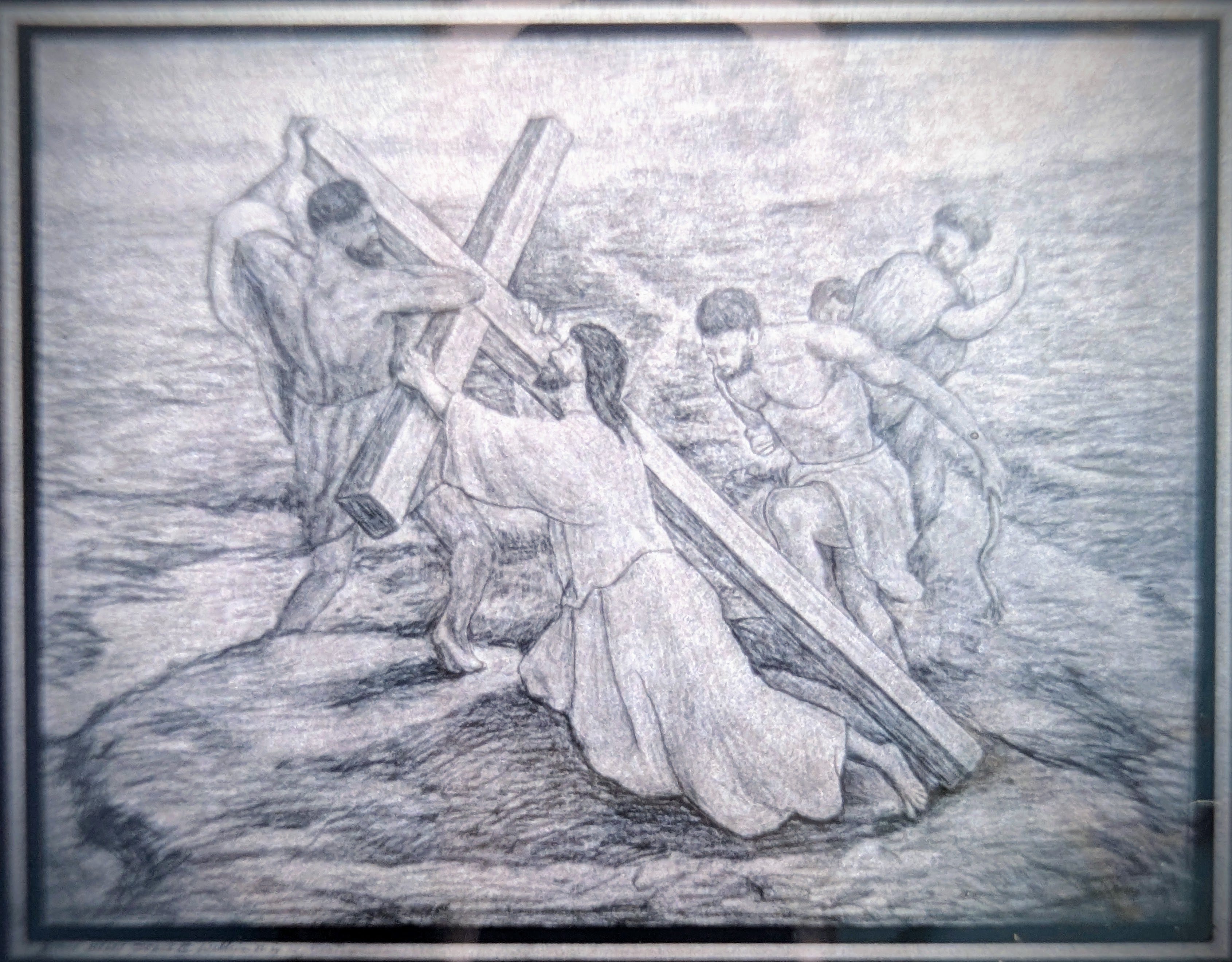 6. A sketch of the crucifix my father kept in his studio — now resting on the box that holds his ashes.