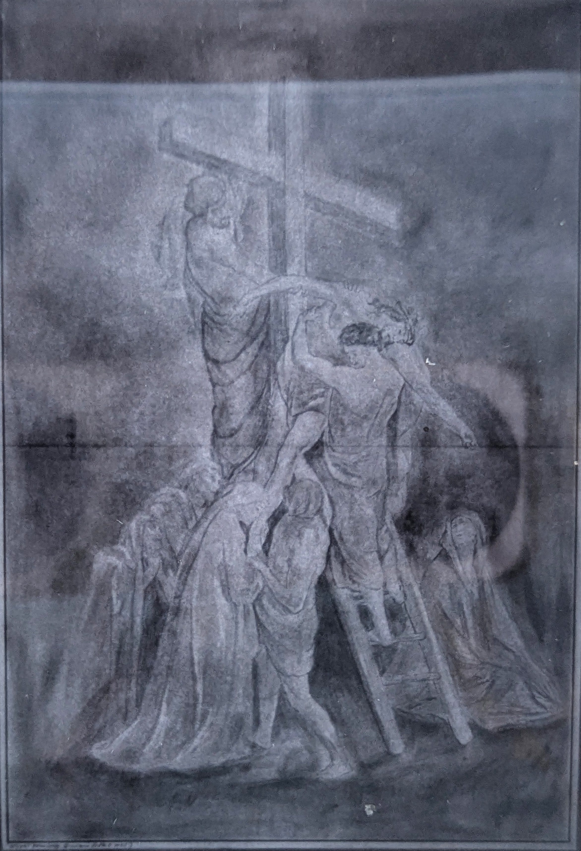 7–10. A study of Rubens’ Descent from the Cross. My father’s full rendition — solemn and theatrical — shows the entire composition. It’s clearly a tribute, but not without divergence. He was absorbing, yes, but also reshaping:
